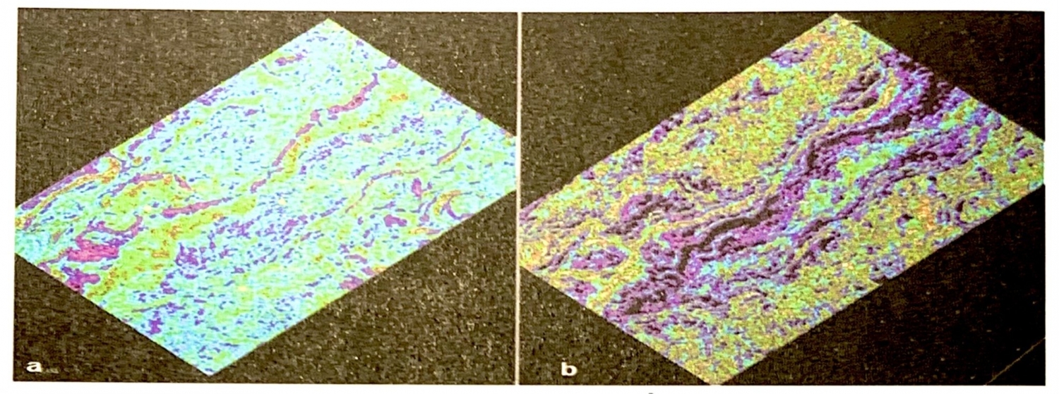 Trong đó: σ2i là giá trị được tính của một mạch; xij là giá trị biên độ của thời gian j mạch thứ i là trung bình biên độ của thời gian j của tất cả các mạch i; L là chiều dài của số tính; I là số mạch tham gia phép tính. Trên hình 5.31 là thí dụ bản đồ thuộc tính khối phương sai trên các mặt t= 2,9s (a) và t= 3,0s (b).