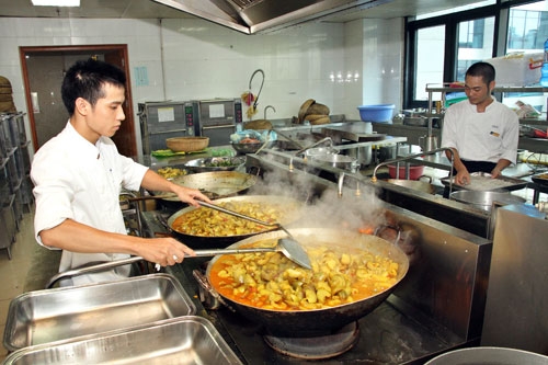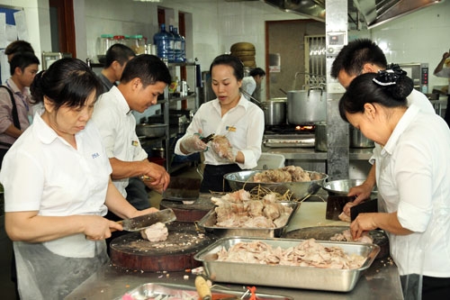 Quy trình ấy là: Đầu tiên, nhập thực phẩm, rau quả lúc 5 giờ sáng. Sau đó bộ phận sơ chế làm sạch bằng cách nhặt, rửa rau quả, loại bỏ những thực phẩm không bảo đảm chất lượng. Nếu trong quá trình này, phát hiện phần nhiều thực phẩm (hoặc rau xanh) bị ôi, thối, nhân viên sơ chế sẽ thông báo ngay để nhà cung cấp phải đổi số thực phẩm, rau xanh đó một cách nhanh nhất. Trong khi đó, bộ phận nấu bếp đã chuẩn bị sẵn sàng cả về thành phần lẫn số lượng gia vị, mắm, muối... cần phải nêm trong quá trình nấu các món ăn... Khi bộ phận sơ chế và chế biến đang bận rộn với công việc trong khu vực nhà bếp thì bộ phận phục vụ “túi bụi” với công việc dọn dẹp nhà ăn, kê bàn ghế, sắp xếp khay đĩa dùng để bày biện thức ăn... Sự “kết nối”, phối hợp nhịp nhàng giữa các bộ phận này để tạo nên quy trình khép kín, chính sự kết thúc công việc của bộ phận này sẽ là sự bắt đầu của bộ phận kia.