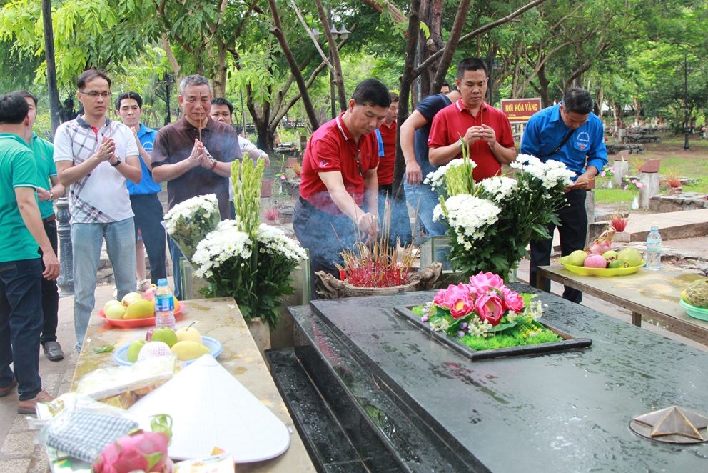 | Đồng chí Nguyễn Quang Huân – Bí thư Chi bộ CNNT, đại diện đoàn thực hiện nghi thức dâng hương tại nghĩa trang Hàng Dương |