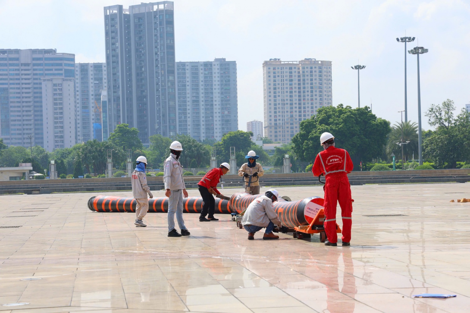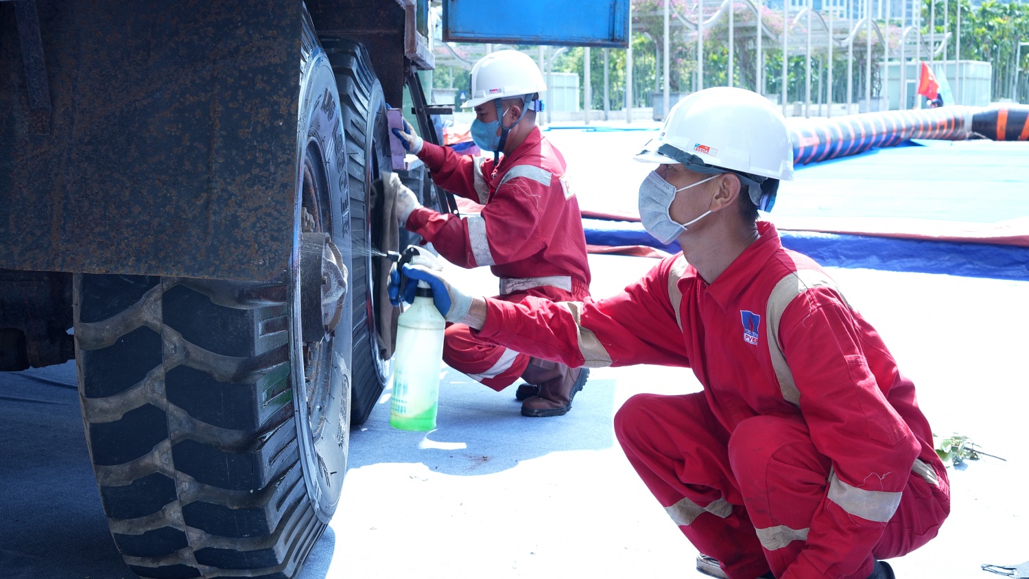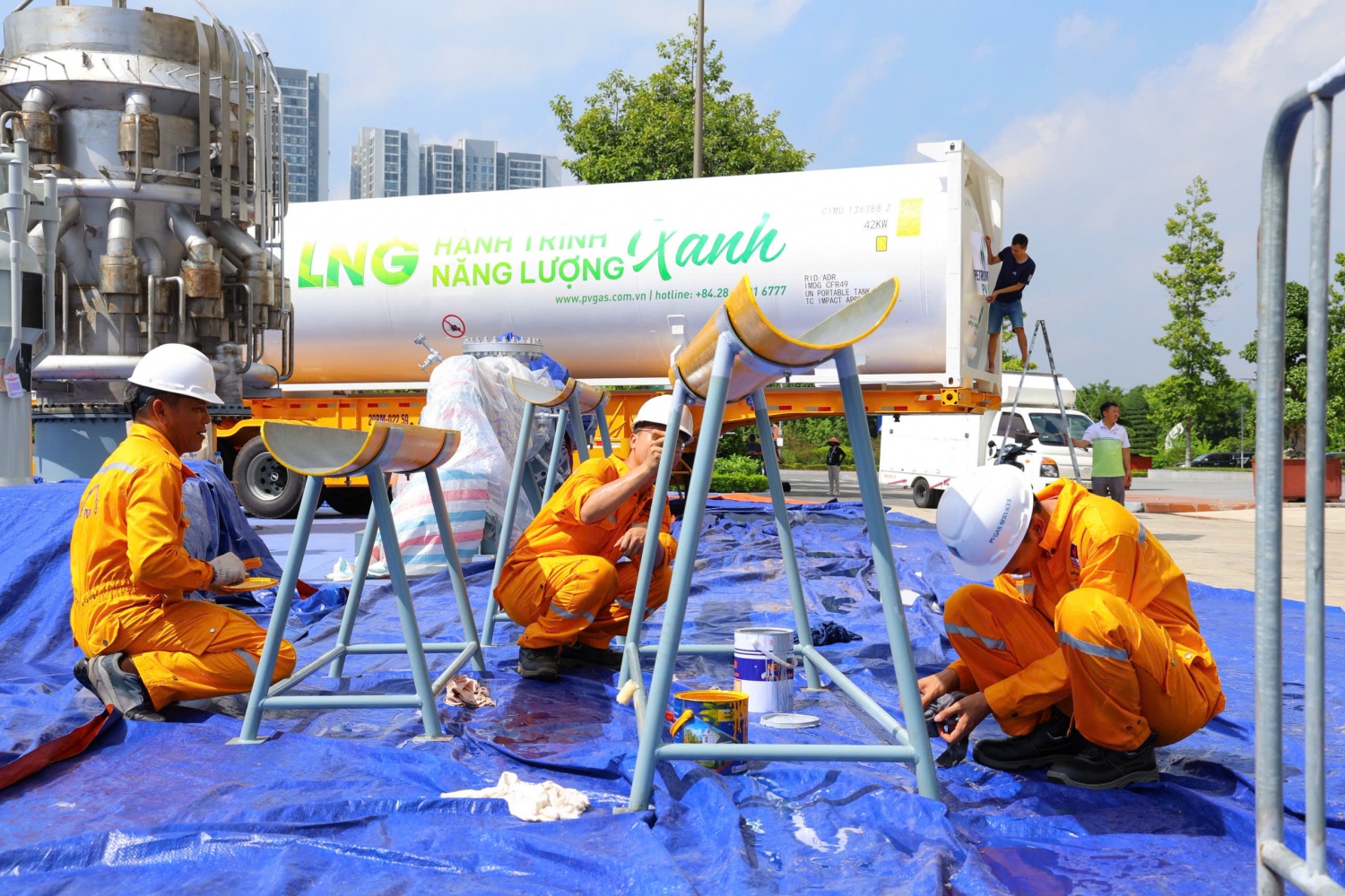 Tất cả các khâu từ quét sơn, vệ sinh, đánh bóng, lắp ráp, di chuyển,... đều được các kĩ sư, cùng ban hậu cần nhanh chóng thực hiện với tinh thần "3 ca 4 kíp"