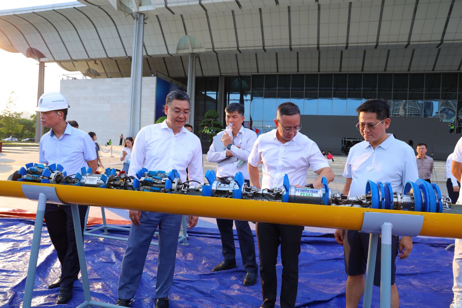 (PetroTimes) - Các công đoạn hoàn thiện mô hình, công trình, banner, hiện vật và các hạng mục trưng bày tại Triển lãm Thành tựu Khoa học – Công nghệ (KHCN) trong khuôn khổ sự kiện kỷ niệm 50 năm thành lập và đón nhận Huân chương Lao động hạng Nhất của Tập đoàn Công nghiệp – Năng lượng Quốc gia Việt Nam (Petrovietnam) đang được triển khai khẩn trương. Ông Trần Bình Minh – Thành viên HĐTV Tập đoàn và ông Lê Mạnh Cường – Phó Tổng giám đốc Tập đoàn đã trực tiếp có mặt để kiểm tra, giám sát, đảm bảo chất lượng và tiến độ chuẩn bị cho sự kiện trọng đại của Petrovietnam. Triển lãm sẽ diễn ra trong 2 ngày 21 và 22/9; mở cửa tự do, miễn phí bắt đầu từ 8h ngày 22/9 để công chúng có thể tham quan.
