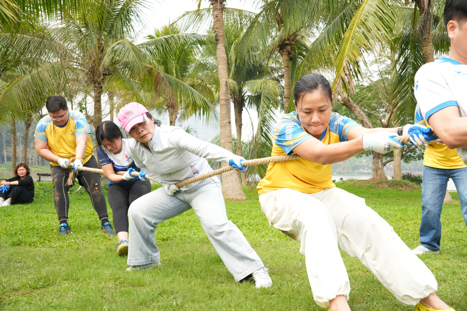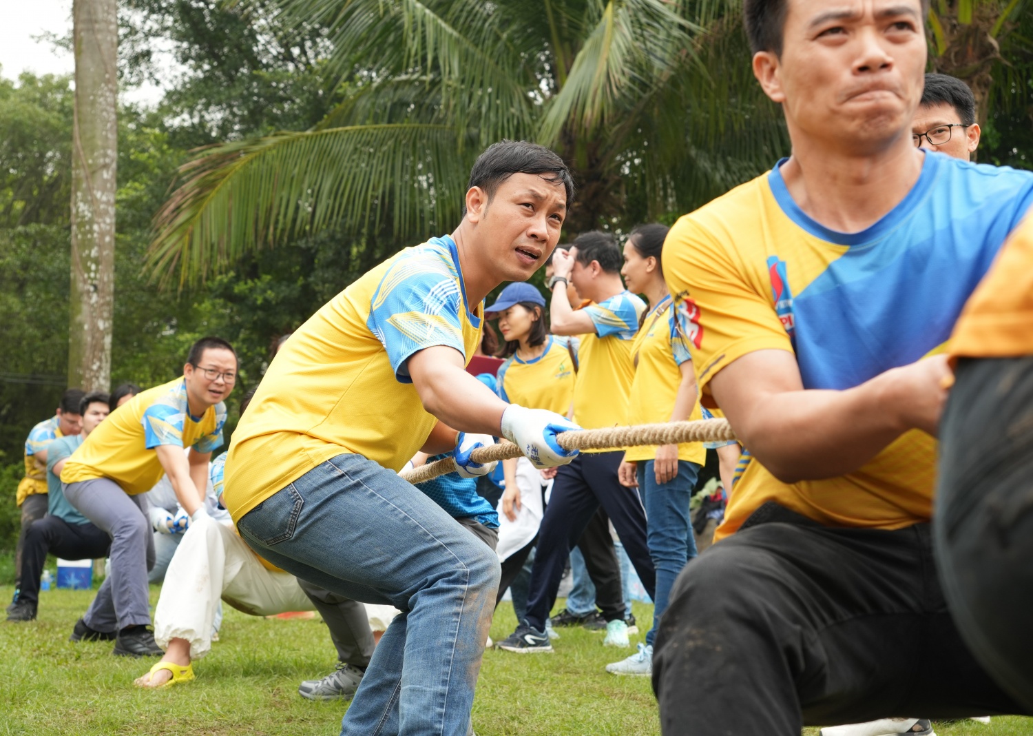 | Môn thi đấu kéo co với tính chất ganh đua "máu lửa" phần nào phản ánh qua sự cổ vũ nhiệt tình từ CBCNV. |