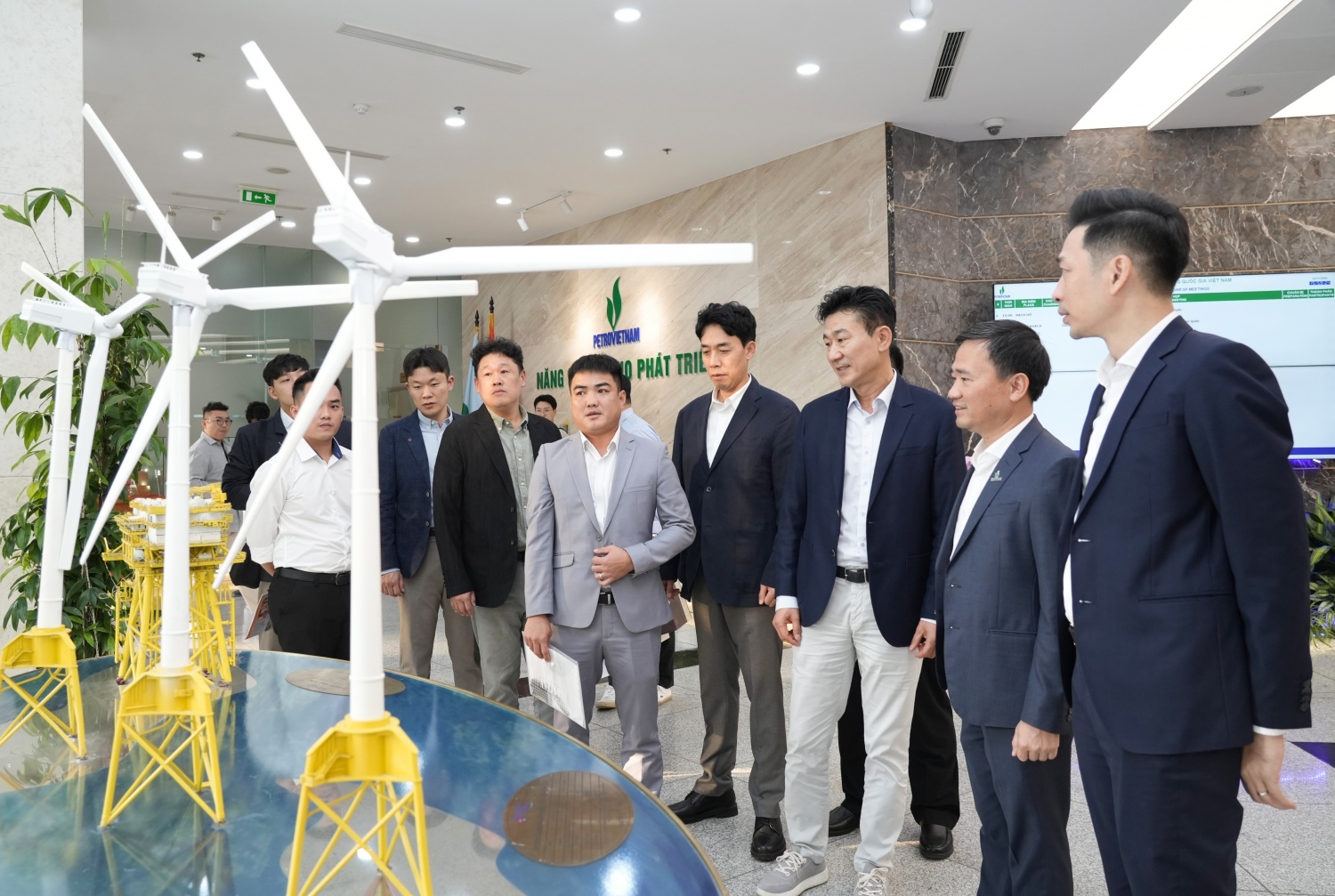 | Chủ tịch Công đoàn Petovietnam Nghiêm Thuỳ Lan giới thiệu các công trình dầu khí của Tập đoàn đến đoàn công tác Công đoàn Dầu khí Hàn Quốc |