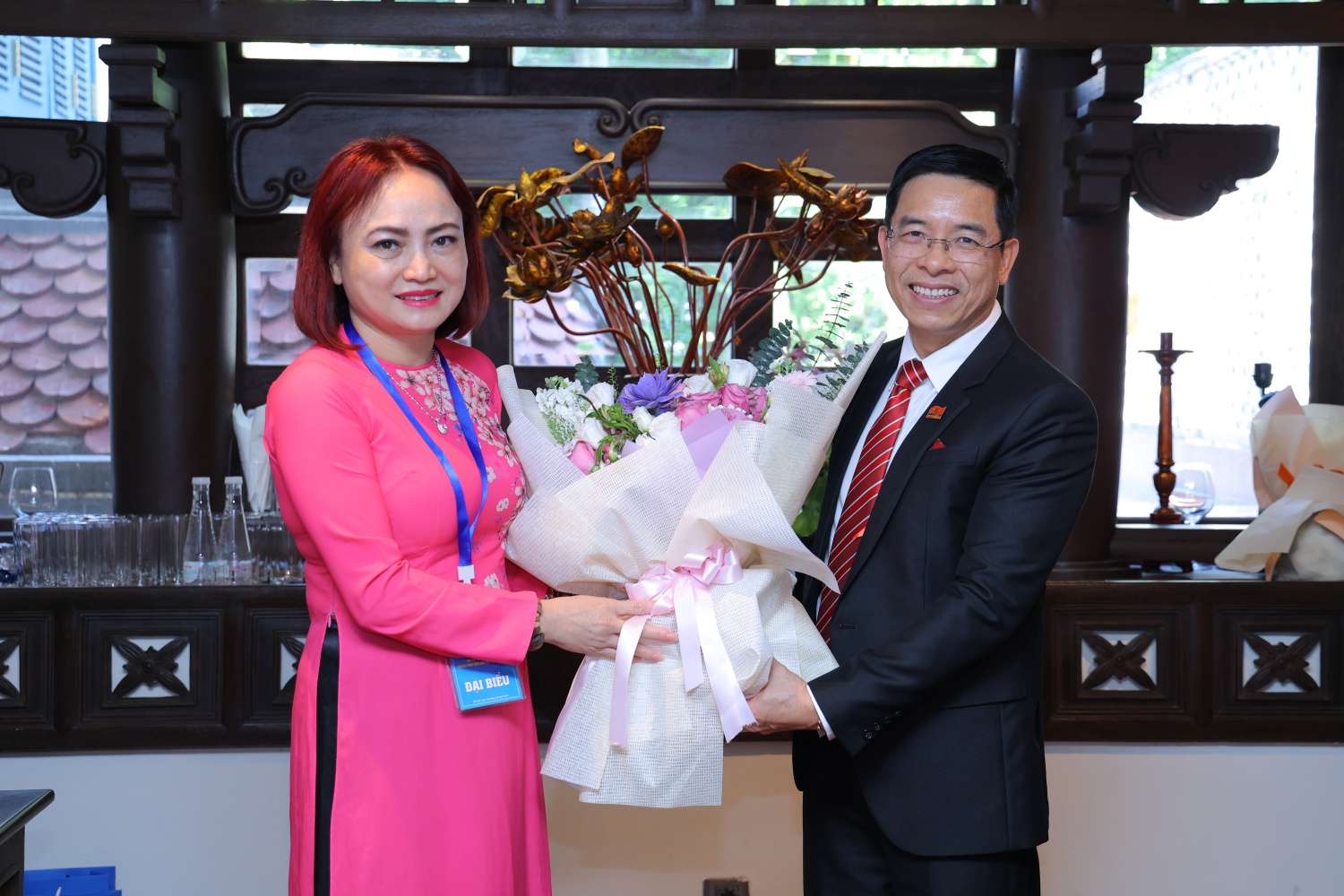 | Đồng chí Nghiêm Thùy Lan - Chủ tịch Công đoàn Petrovietnam và đồng chí Nguyễn Mạnh Kha - Phó Chủ tịch Thường trực Công đoàn Petrovietnam trao tặng Giấy chứng nhận và tặng hoa chúc mừng cá nhân điển hình tiên tiến. |