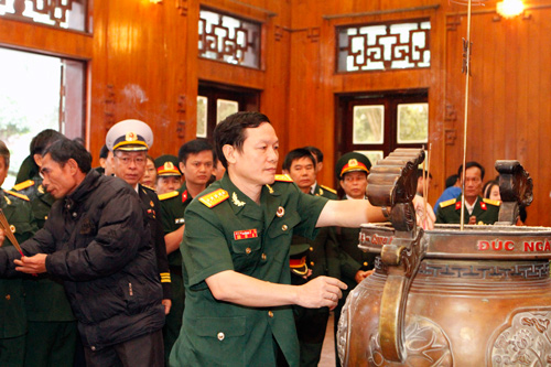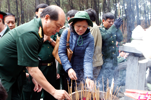 Các đại biểu đoàn CCB PVN dâng hương tại mộ phần bà Hà Thị Hy, bà nội của Bác.