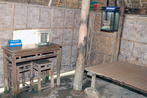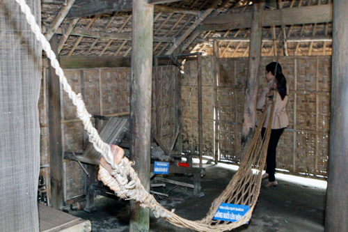 Không gian trong căn nhà nơi Bác chào đời vẫn được giữ nguyên trạng. Chiếc võng nơi Bác nằm ngủ bên cạnh khung cửi mà mẹ Bác vẫn vừa dệt vừa ru Bác ngủ.