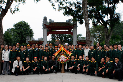 Đoàn CCB PVN chụp ảnh lưu niệm trước khu tưởng niệm Chủ tịch Hồ Chí Minh bên quê nội Bác.