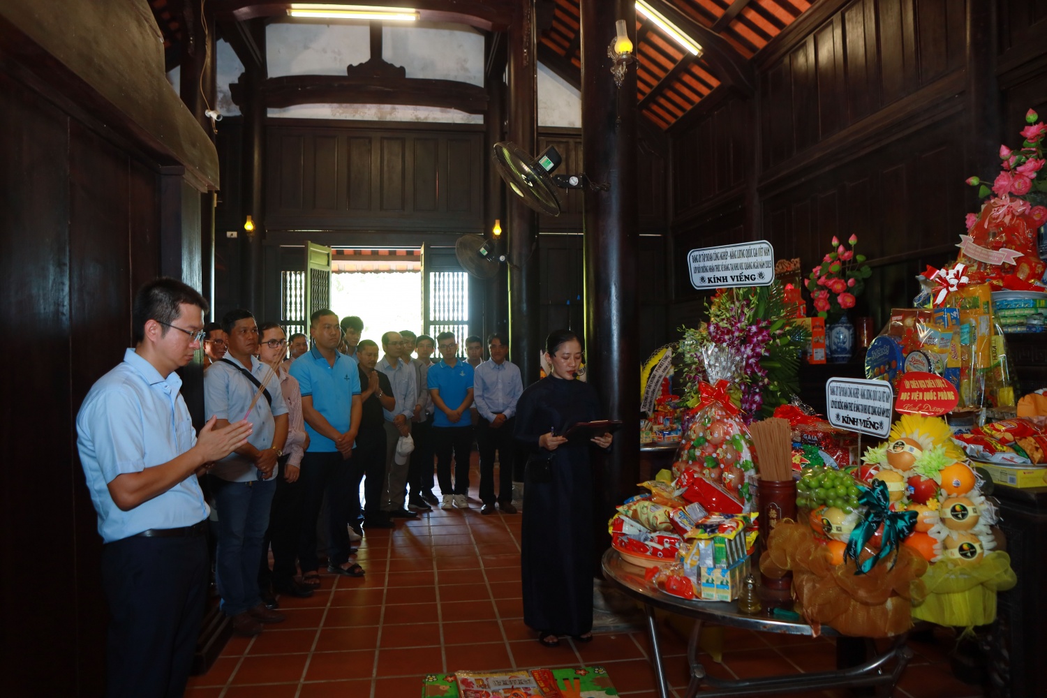 Các học viên dâng hoa, dâng hương tưởng niệm các nạn nhân vụ thảm sát Mỹ Lai. |