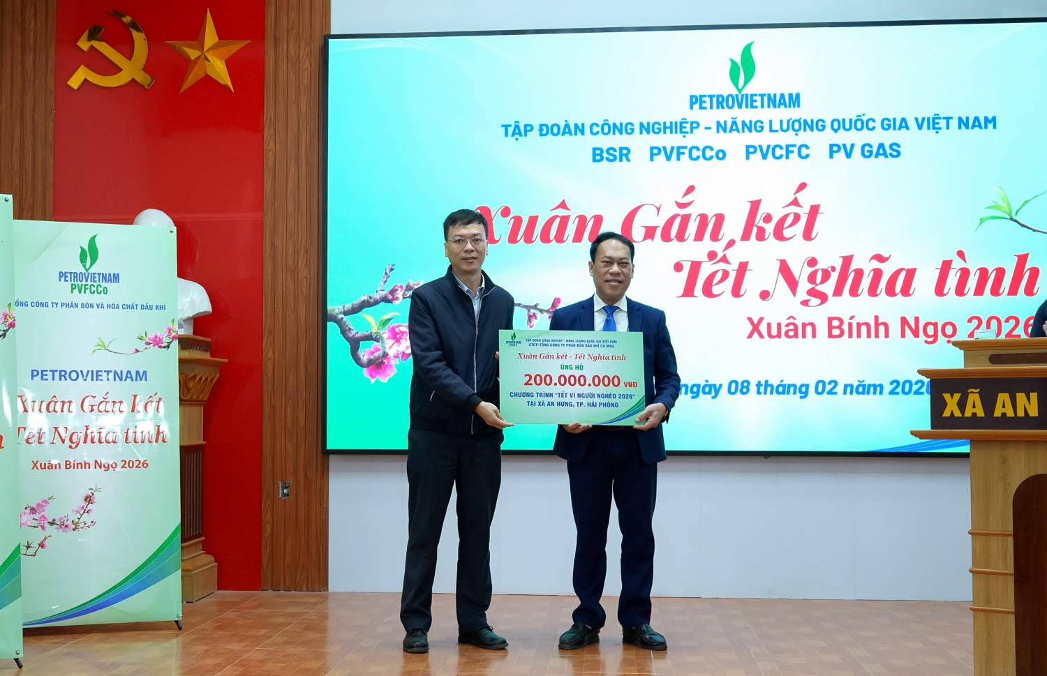Ngày 8/2, tại xã An Hưng (thành phố Hải Phòng), Tập đoàn Công nghiệp - Năng lượng Quốc gia Việt Nam (Petrovietnam) đã tổ chức chương trình an sinh xã hội “Petrovietnam: Xuân Gắn kết - Tết Nghĩa tình”, trao quà và hỗ trợ kinh phí chăm lo Tết cho các hộ nghèo, hộ cận nghèo, gia đình chính sách và học sinh có hoàn cảnh khó khăn trên địa bàn.