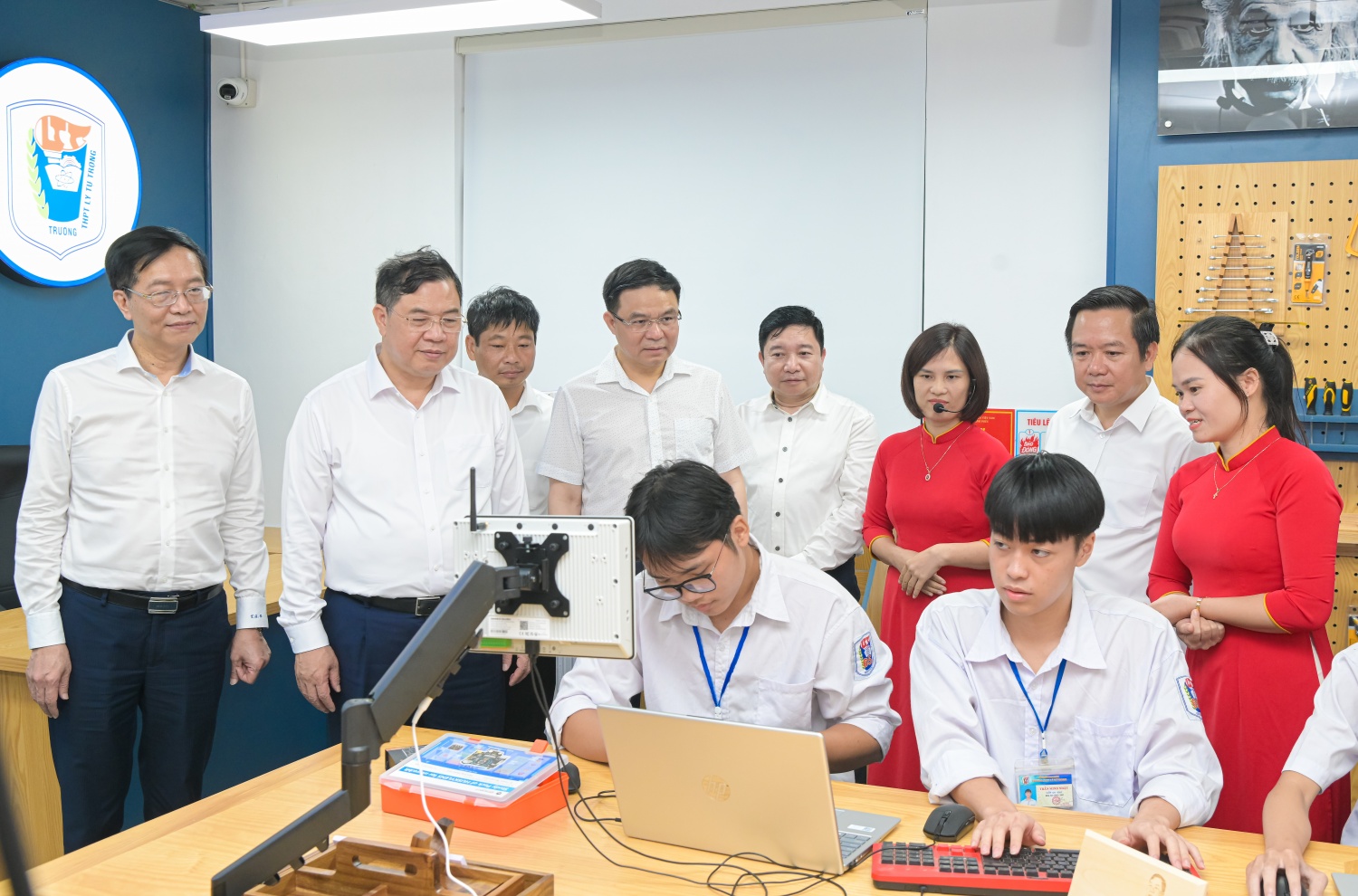| Đồng chí Lê Mạnh Hùng: Phòng giáo dục thực hành STEM tại Trường THPT Lý Tự Trọng không chỉ hỗ trợ học sinh tiếp cận kiến thức khoa học – công nghệ hiện đại, mà còn mở ra cơ hội rèn luyện kỹ năng thực hành, khơi dậy niềm đam mê nghiên cứu và sáng tạo |