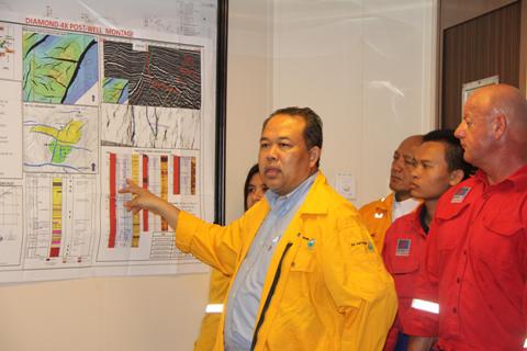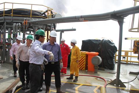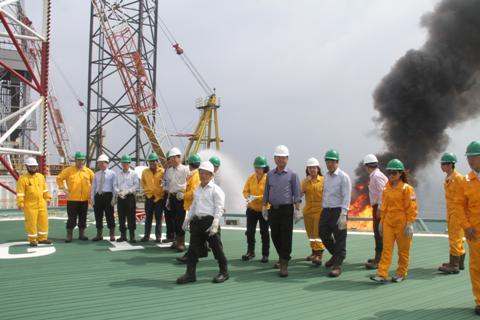 Đoàn công tác đã có mặt ngay trên giàn khoan tự nâng PV Drilling II ở vùng mỏ Lô 01-02 và chứng kiến các hoạt động thử vỉa, thẩm lượng tại giếng khoan Diamond-4X. Đồng chí Đinh La Thăng đã đánh giá cao và chúc mừng những nỗ lực lao động và thành quả đạt được thông qua sự hợp tác tích cực giữa PCVL cùng các đơn vị thành viên của PVN như PVEP, PV Drilling.