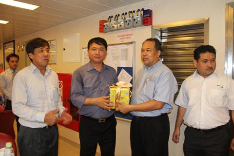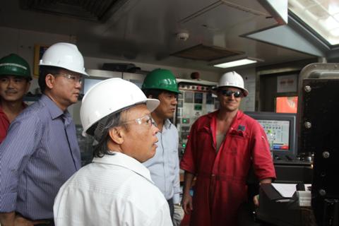 Đồng chí Đinh La Thăng - Ủy viên BCH Trung ương Đảng, Chủ tịch HĐTV PVN tham quan trung tâm điều khiển của giàn khoan PV Drilling II