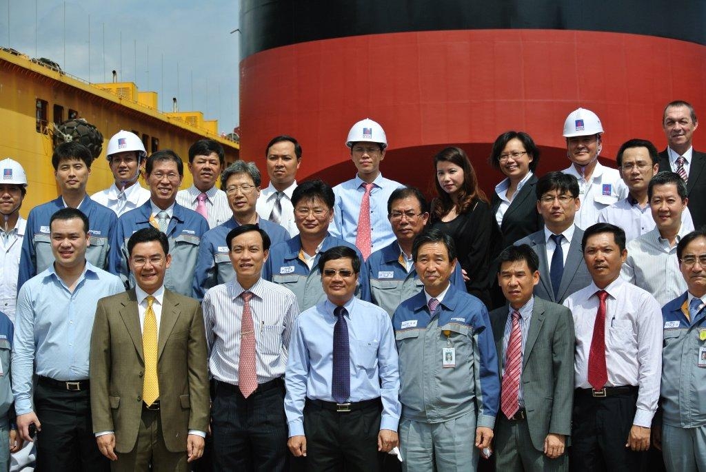 Đại diện các bên tham gia lễ Hạ thủy kho nổi chứa và xuất dầu FSO PTSC BIENDONG 01.