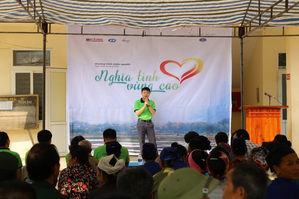 Ngày diễn ra chương trình, bà con có mặt đông đủ từ rất sớm cùng sự hiện diện của 21 bác sỹ và đoàn tình nguyện viên “Nghĩa tình vùng cao”. Phát biểu tại buổi khai mạc, ông Phạm Hùng Phương - Giám đốc PTSC Thanh Hóa, đại diện cho đoàn chia sẻ: “Nghĩa tình vùng cao” nhận sứ mệnh xây dựng và triển khai các chương trình nhân đạo, từ thiện, văn hóa cho cộng đồng, tạo điều kiện cho người dân ở các xã vùng dân tộc thiểu số và miền núi xa trung tâm được tiếp cận các dịch vụ y tế tiên tiến, được tư vấn, hướng dẫn chăm sóc sức khỏe một cách tốt nhất, kịp thời nhất. Bên cạnh lĩnh vực y tế, mỗi năm Quỹ Nghĩa tình vùng cao mong muốn sẽ phối hợp cùng các cơ quan, tổ chức uy tín trong và ngoài nước triển khai nhiều chương trình khuyến học, hỗ trợ những hoàn cảnh khó khăn, chia sẻ một phần nhỏ những thiệt thòi của các em học sinh và thắp lên hy vọng cho những mầm non tương lai của đất nước.