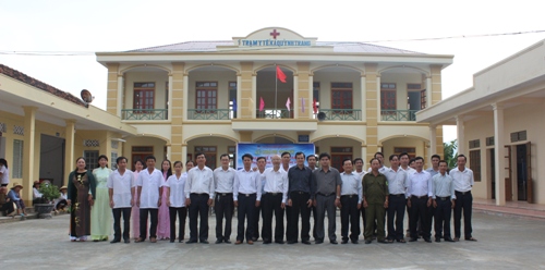 Lãnh đạo Tổng Công ty PV Drilling cùng lãnh đạo địa phương cắt băng khánh thành công trình Trạm y tế xã Quỳnh Trang, Hoàng Mai, Nghệ An