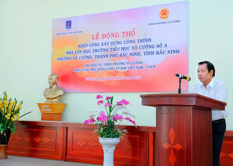 | Ông Nguyễn Thanh Nghị, Phó tổng giám đốc PV GAS phát biểu tại Lễ khởi công công trình giáo dục Trường Tiểu học Võ Cường số 3 |
