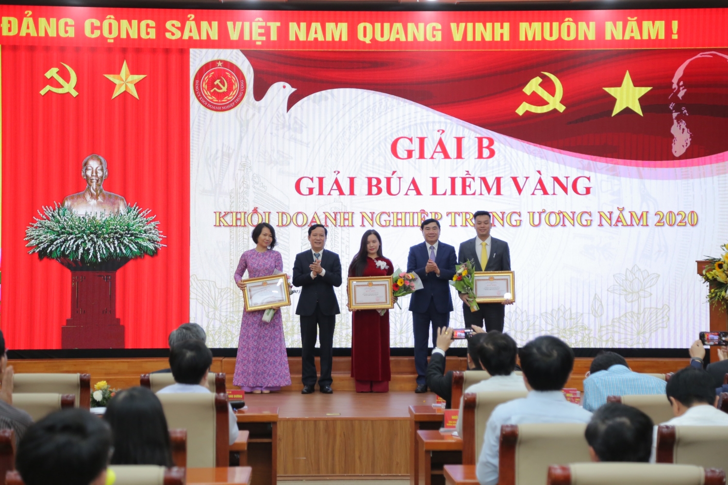 Tại buổi lễ, Đảng ủy Khối đã trao 02 Giải A, 03 Giải B, 05 Giải C, 10 Giải Khuyến khích cho các tác giả, nhóm tác giả có tác phẩm đạt Giải Búa liềm vàng Khối Doanh nghiệp Trung ương năm 2020; đồng thời căn cứ vào chất lượng, số lượng tác phẩm, công tác triển khai hưởng ứng, tham gia Giải của các đảng ủy trực thuộc, khen thưởng 06 đảng ủy trực thuộc có thành tích xuất sắc trong hưởng ứng và tham gia Giải Búa liềm vàng Khối Doanh nghiệp Trung ương năm 2020. Tác phẩm: Cải tổ, làm mới "con thuyền Dầu khí" của nhà báo Lê Hà Thanh Ngọc, Chi bộ Tạp chí Năng lượng Mới thuộc Đảng bộ Tập đoàn Dầu khí Quốc gia Việt Nam đã đạt Giải C.